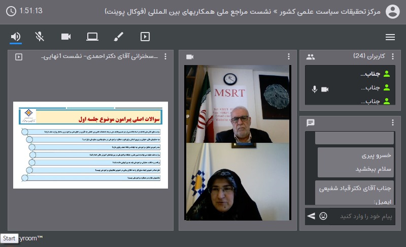 The first meeting of the series of virtual sessions planned by the National Research Institute for Science Policy in interaction with the Center for International Scientific Cooperation of the Ministry of Science, Research and Technology entitled “Presenting a report on the current situation, relying on previous findings, with a focus on examining the challenges in the field of policy and providing political strategies”, was held on Monday, 29 June 2020.